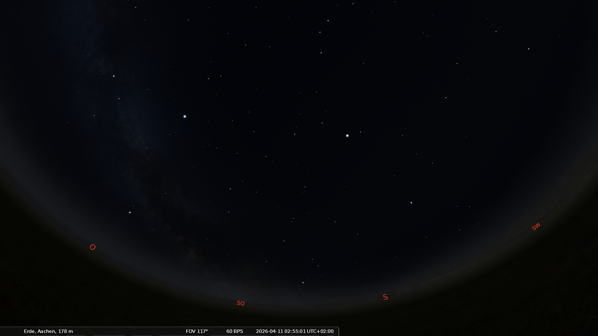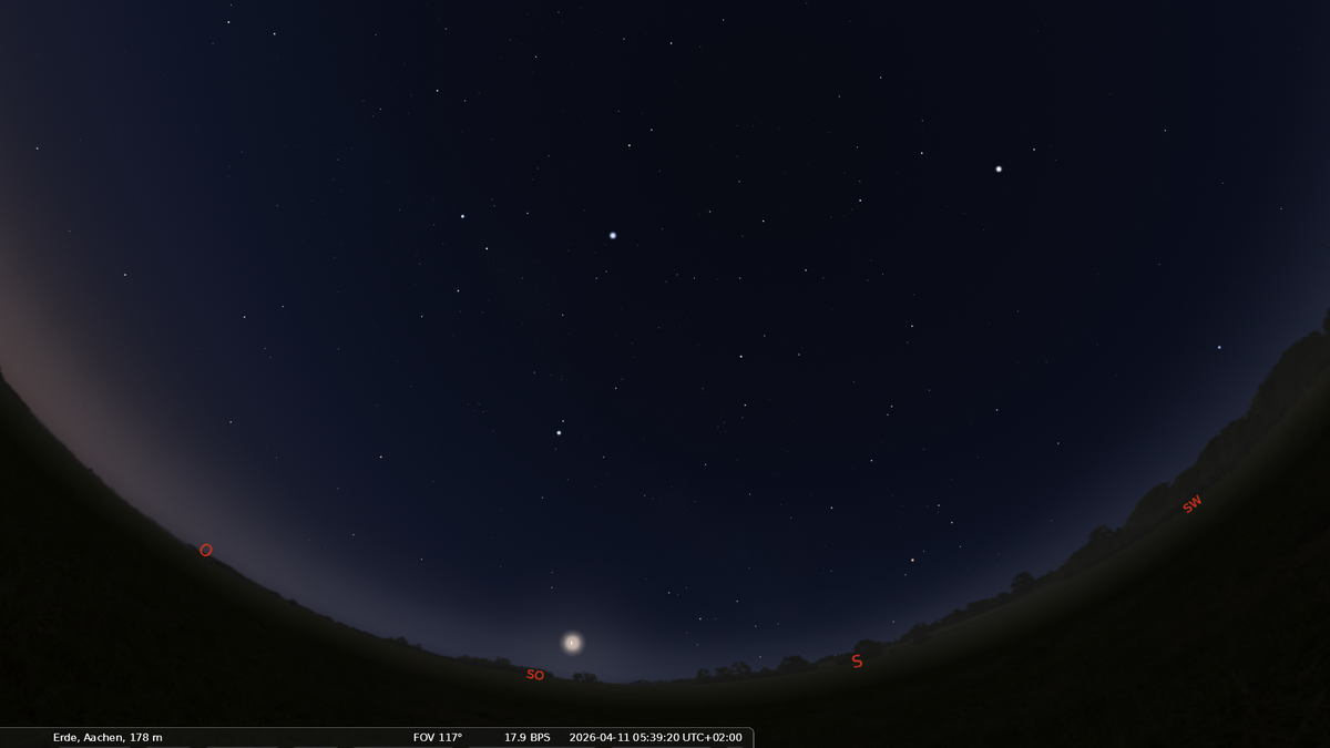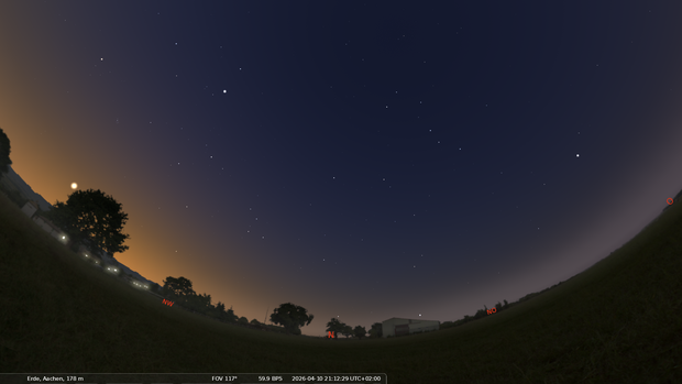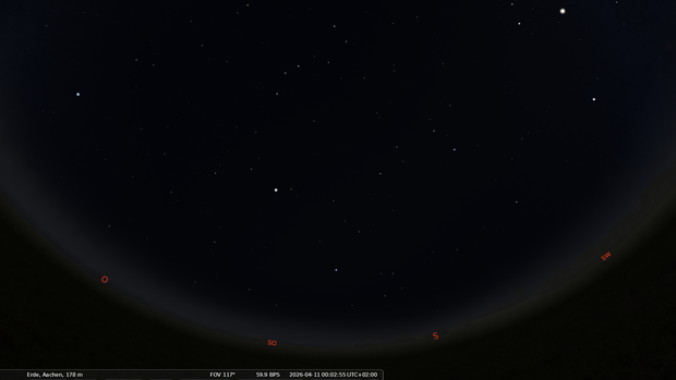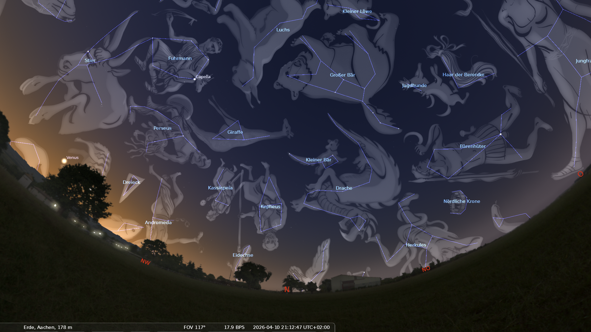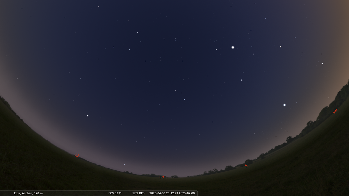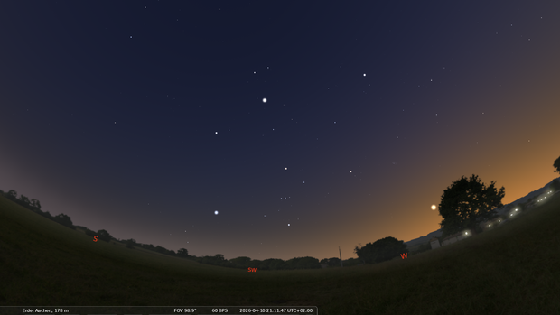 Tief über dem nordwestlichen Horizont ist die Venus als heller "Abendstern" sichtbar.