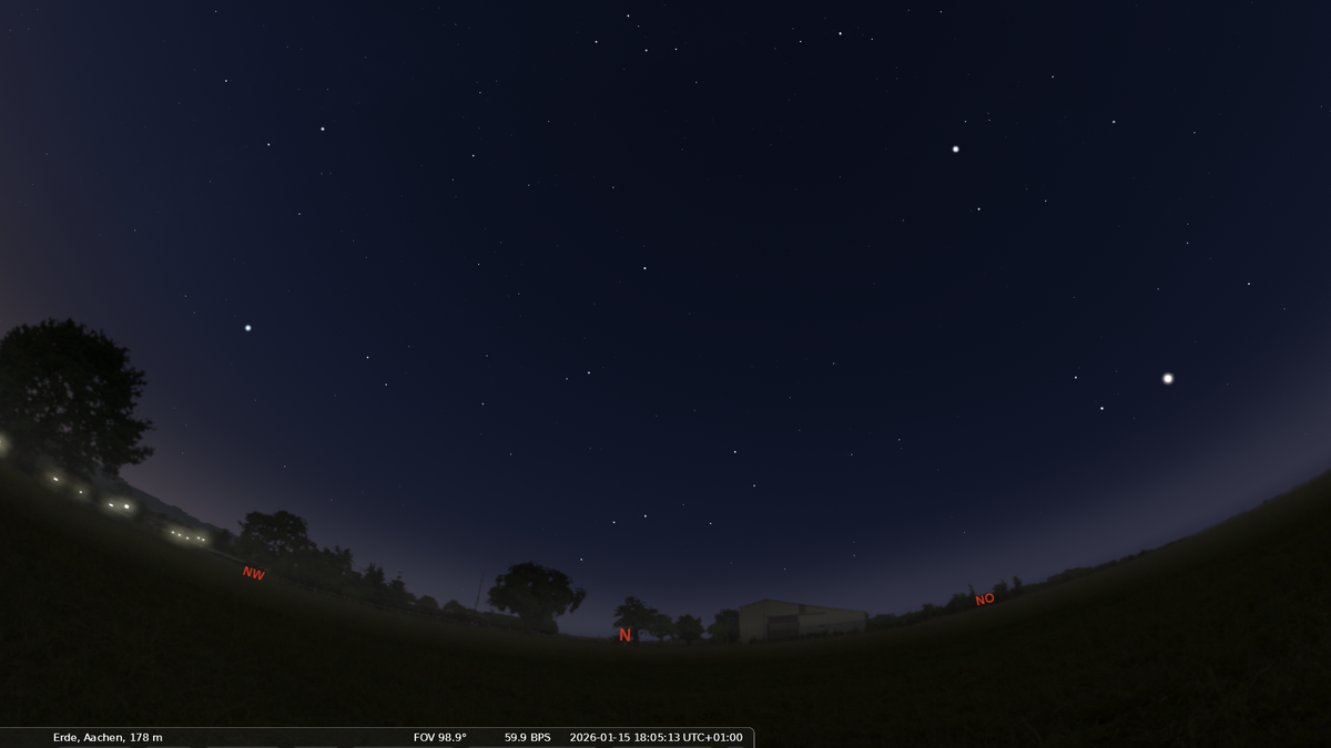 Im Norden steht der Große Bär über dem Horizont. Seine sieben hellsten Sterne werden auch als der "Große Wagen" bezeichnet - die offizielle Bezeichnung des Sternbildes lautet jedoch Großer Bär.