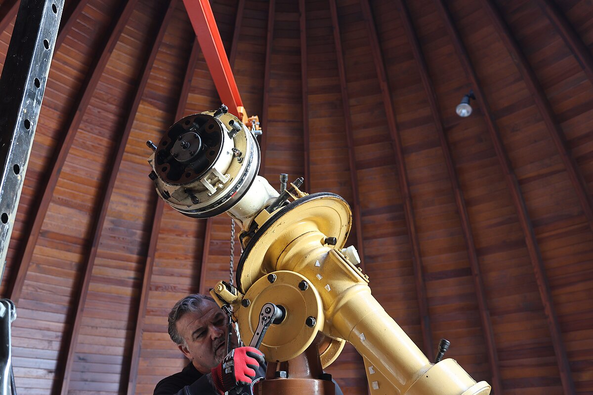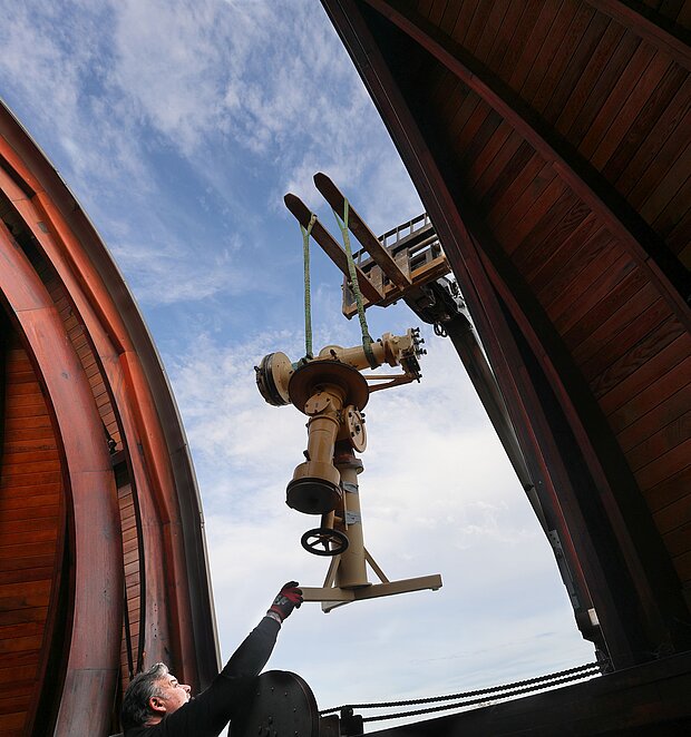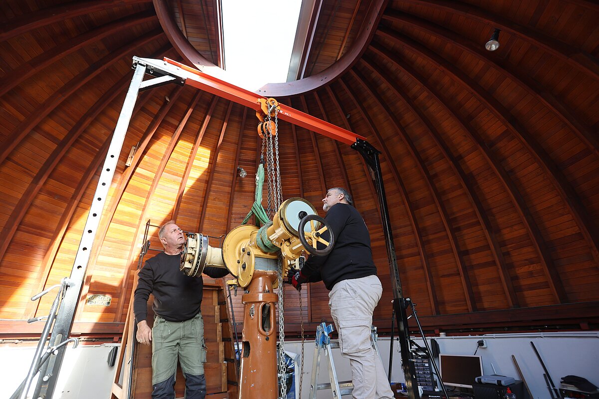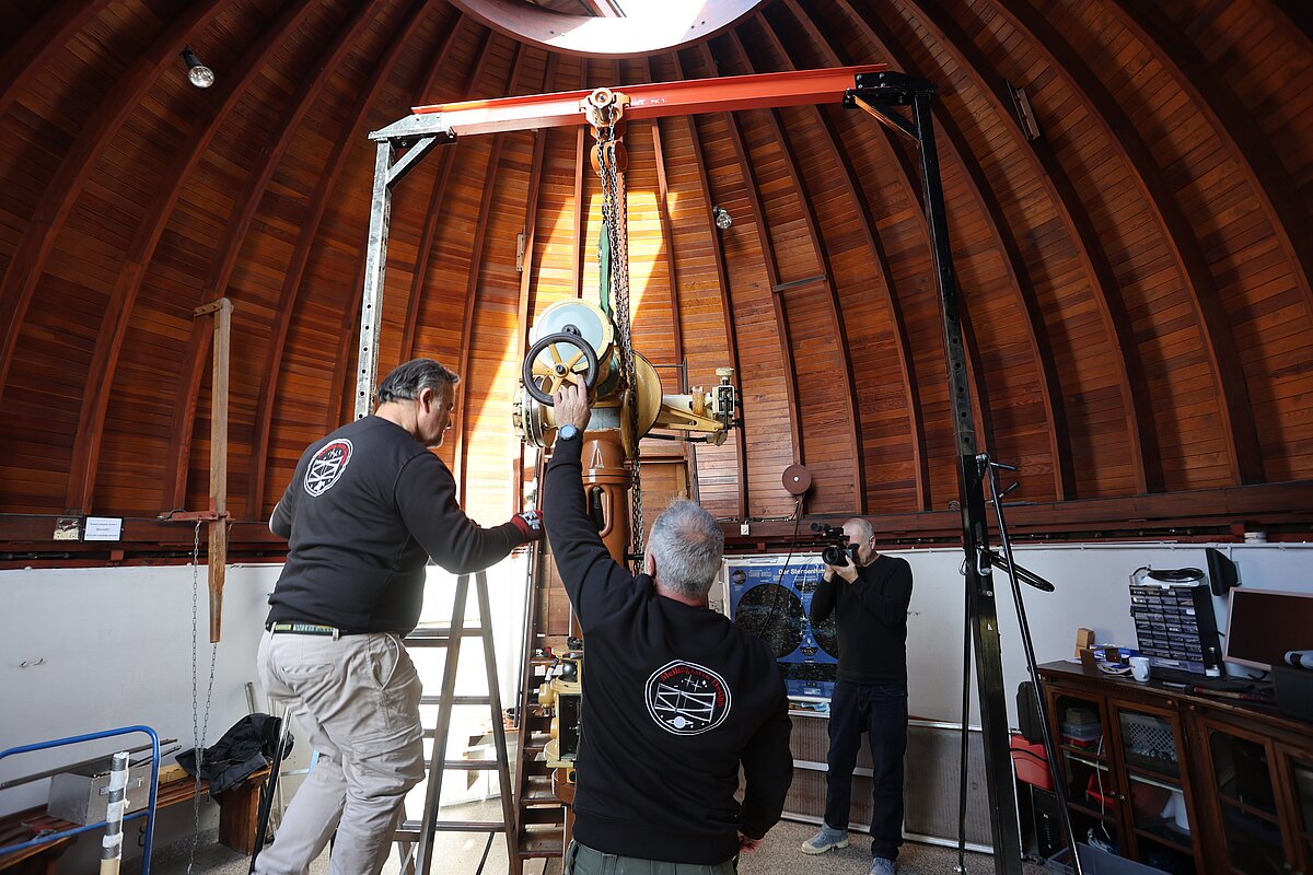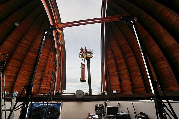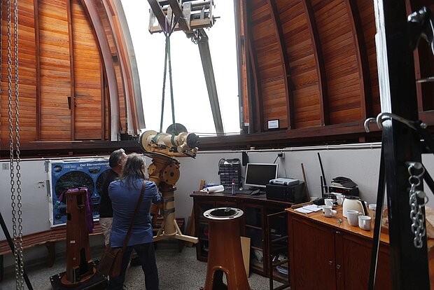 Übergangsweise wird ein modernes Teleskop zur Verfügung stehen, um Beobachtungen durchzuführen. Nach der Restaurierung wird das große Teleskop in neuem Glanz wieder an seinem alten Platz aufgestellt.