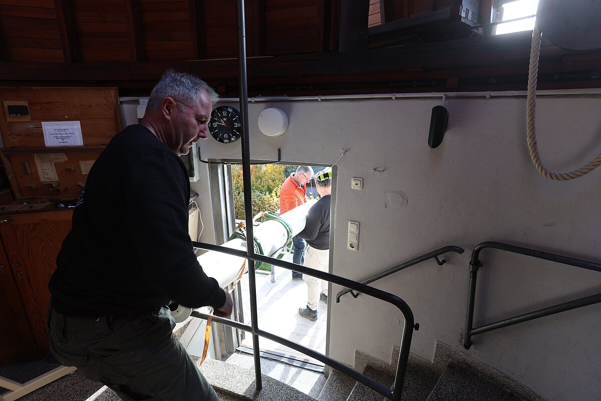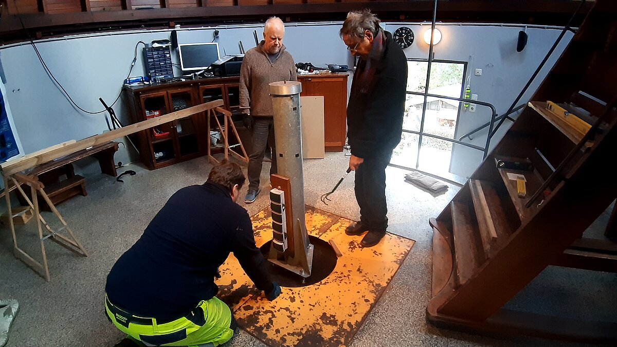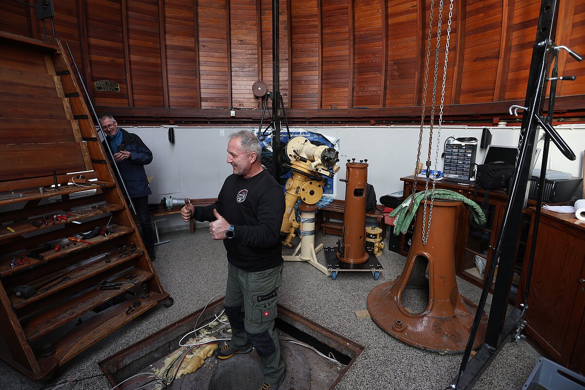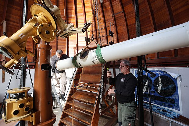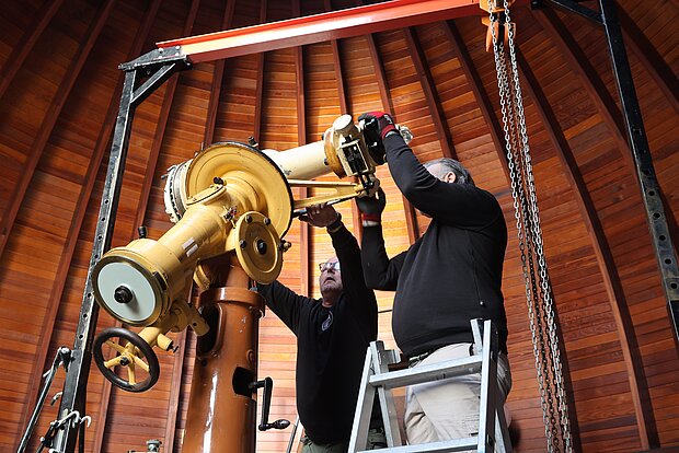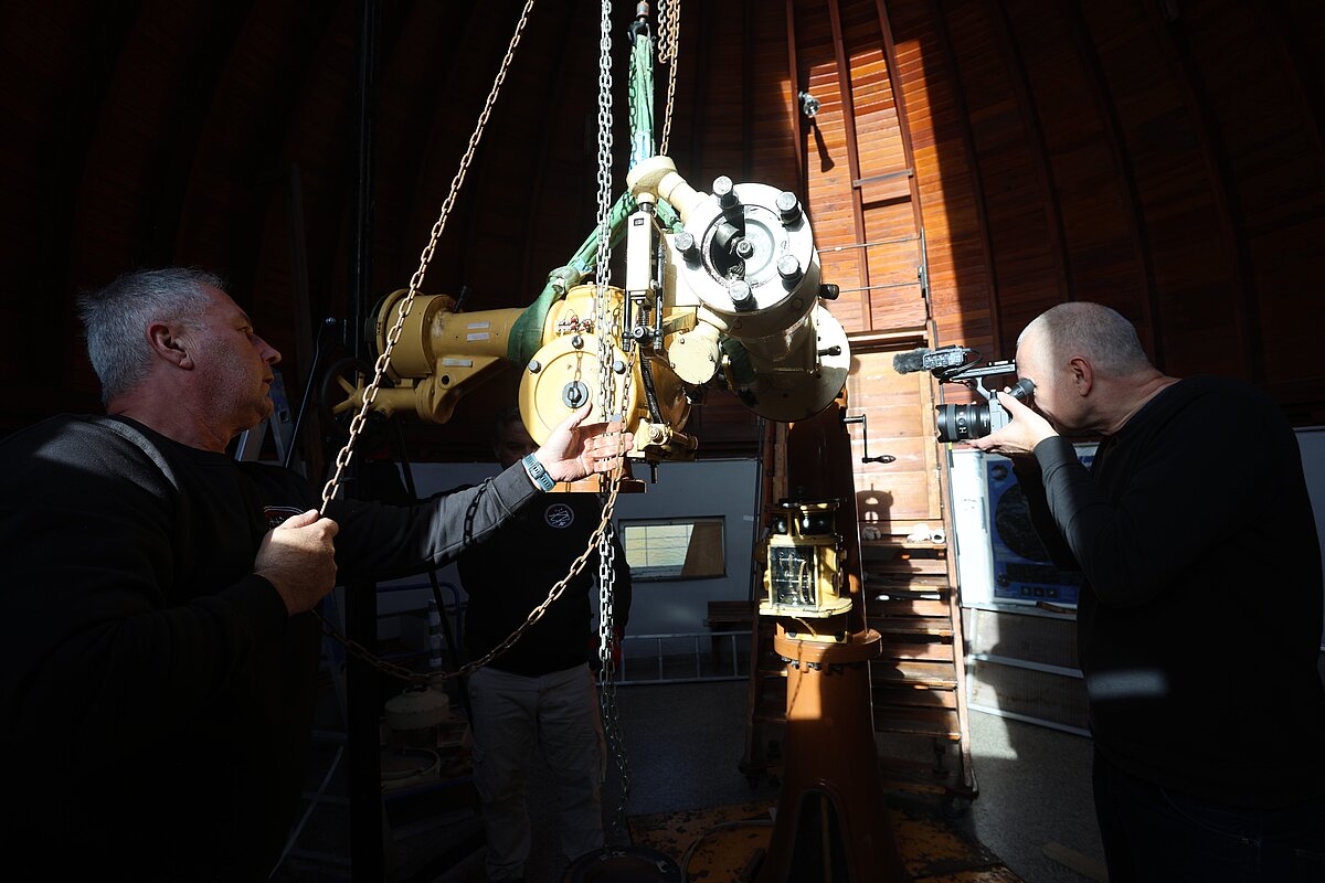 Übergangsweise wird ein modernes Teleskop zur Verfügung stehen, um Beobachtungen durchzuführen. Nach der Restaurierung wird das große Teleskop in neuem Glanz wieder an seinem alten Platz aufgestellt.