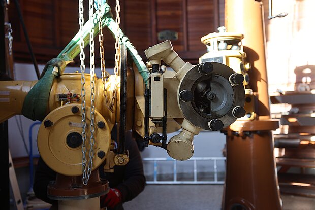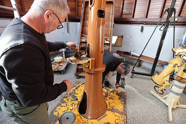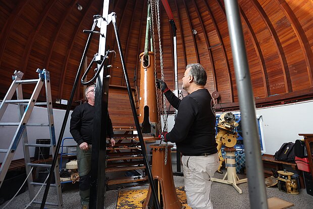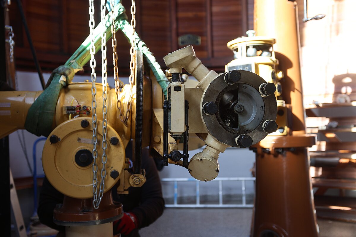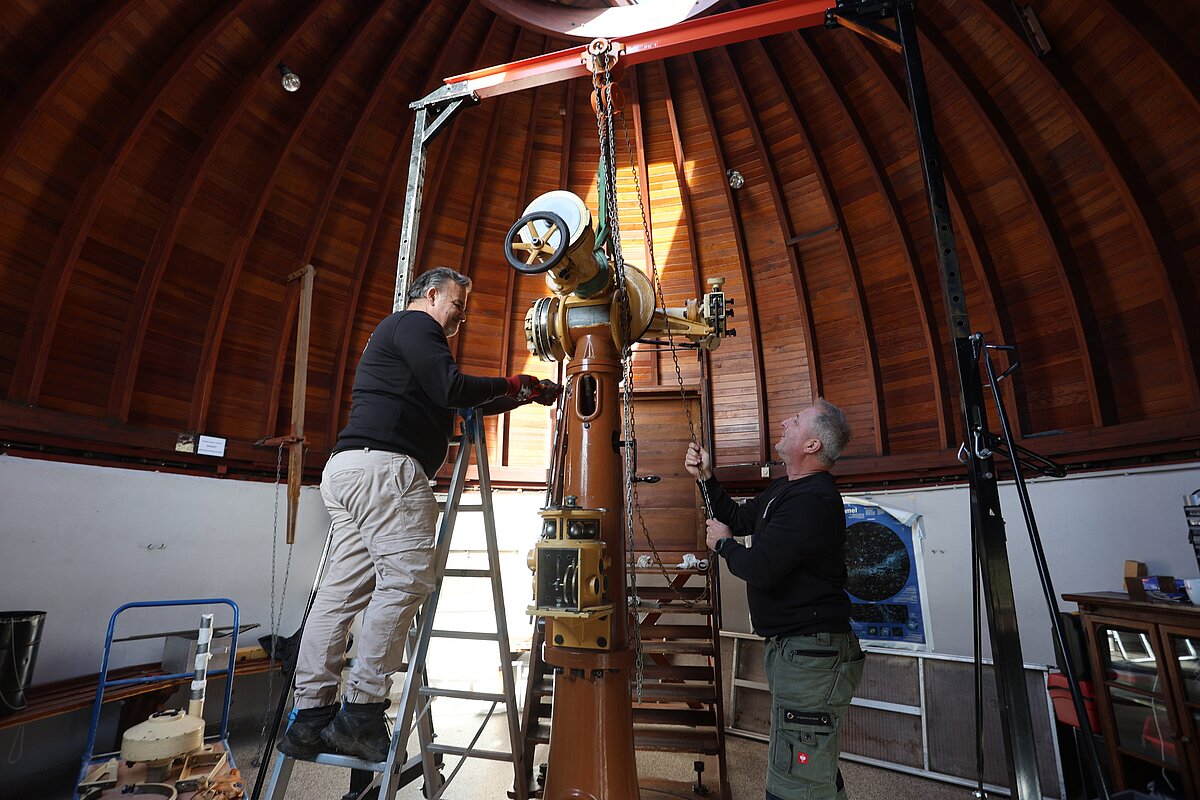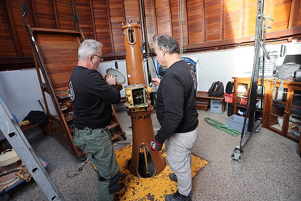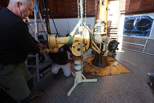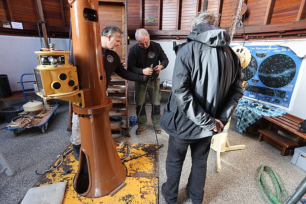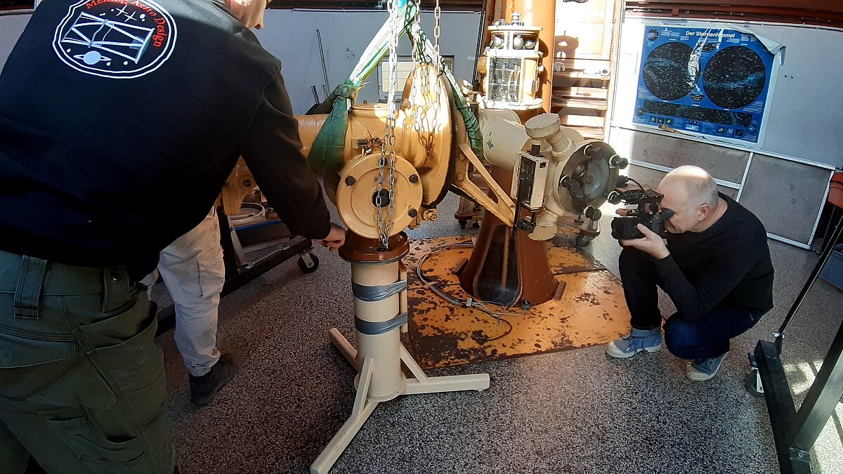 Mit der Restaurierung beauftragt wurde Uwe Meiling, der bereits das Carl-Zeiss-Teleskop der Sternwarte Greifswald komplett überholt hat.