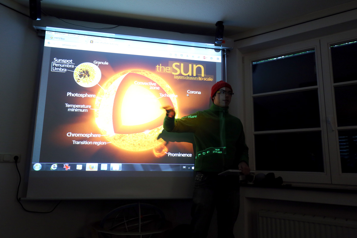 Obwohl der Himmel bedeckt war und keine astronomischen Beobachtungen zuließ, gab es eine Menge zu sehen. So hatten Mitglieder des Arbeitskreises der Sternwarte ihre Teleskope mitgebracht.